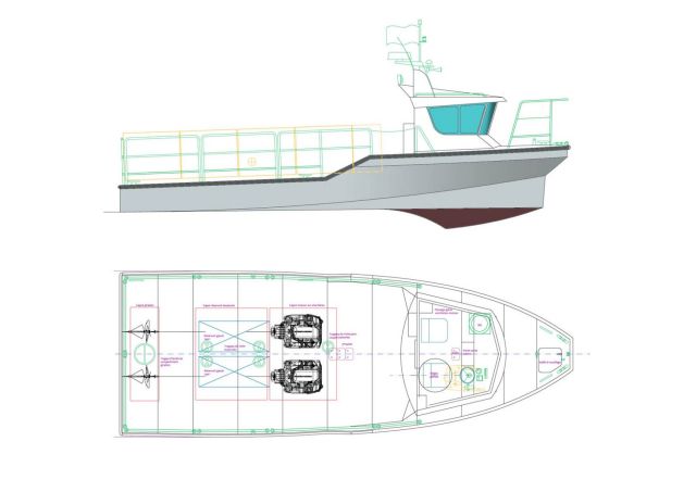 Supplyboat pour le transport de Fret, jusqu’à 3,7 t. Vitesse maximum de 25 nœuds.