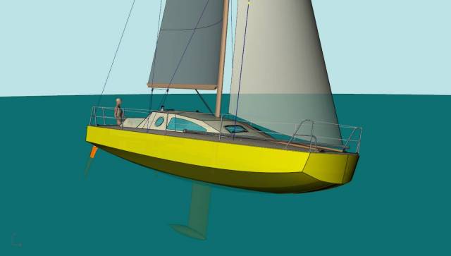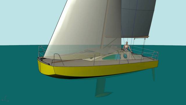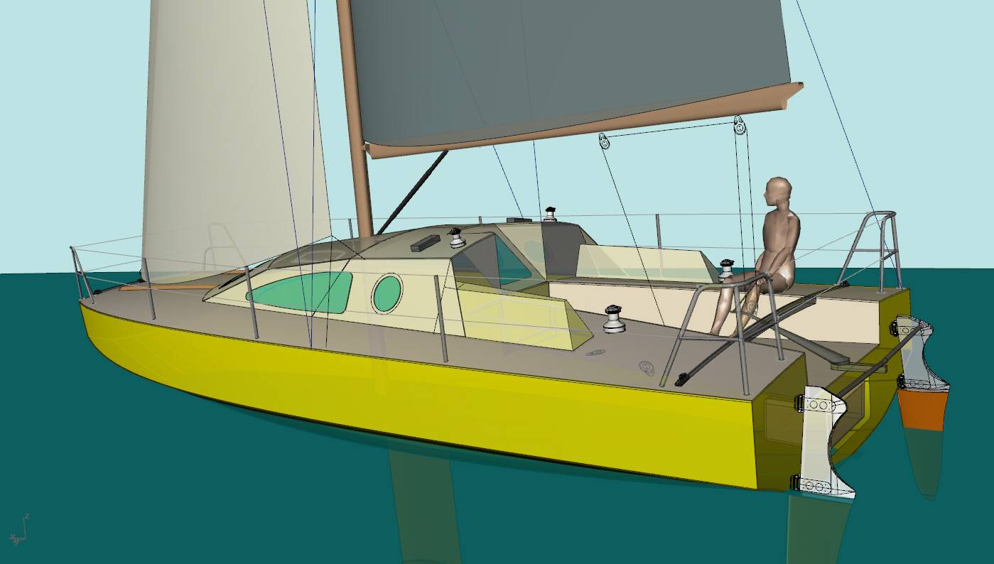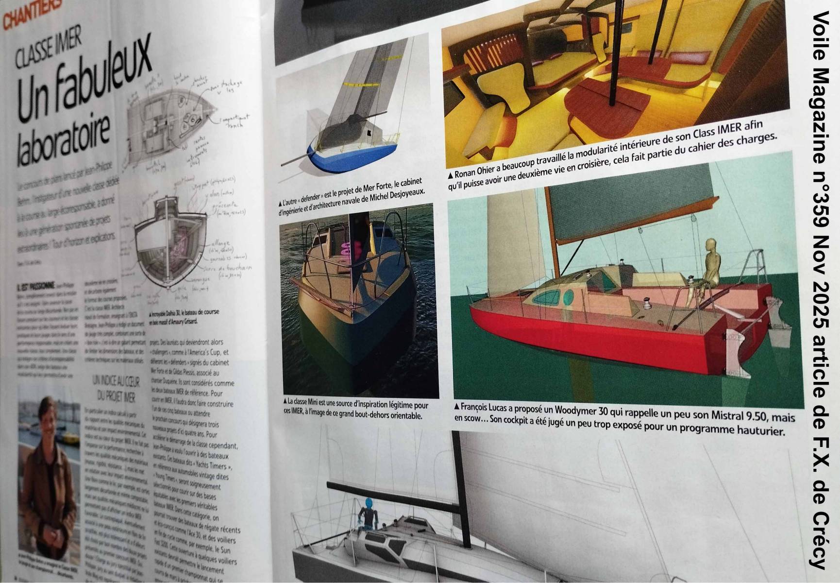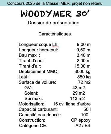 Conçu à l’occasion du concours de la toute nouvelle Classe IMER (mais malheureusement pas retenu parmi les 3 lauréats) le Woodymer 30’ est un voilier de course-croisière performant (carène scow polyvalente grâce à son creux) qui met l’accent sur la simplicité de construction en CP-époxy de façon à réduire les coûts et l’empreinte carbone.